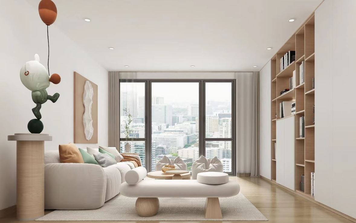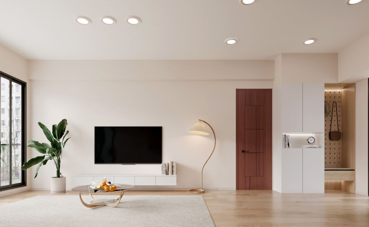 選擇柔和的色彩基調:以白色、灰色或淺木色為主,搭配溫暖的地面與抱枕,營造舒適的居住氛圍。