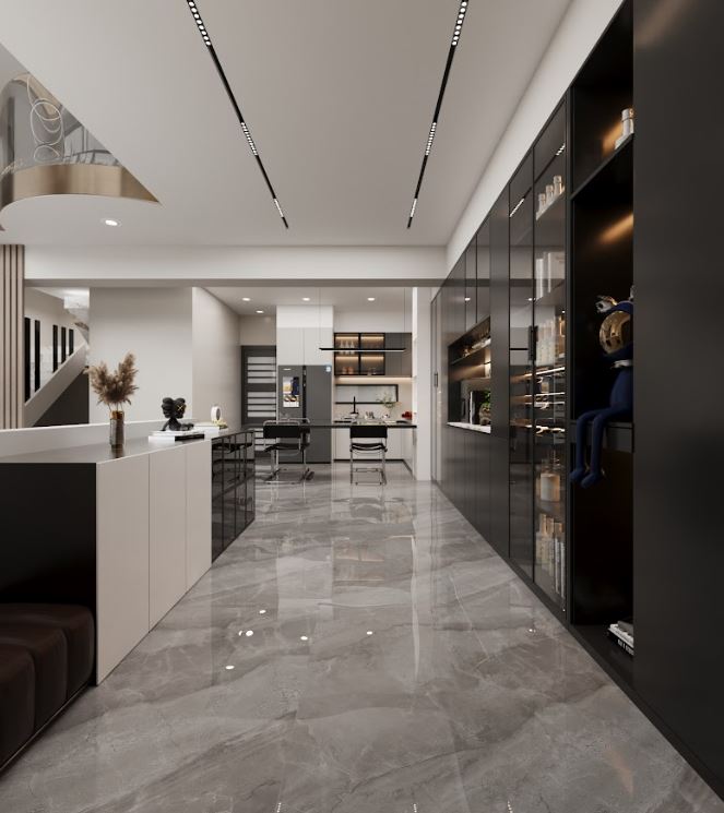 極簡主義:多使用單一的白色基調,材質偏向冷調,常見拋光的石材或金屬,強調極簡的視覺效果。