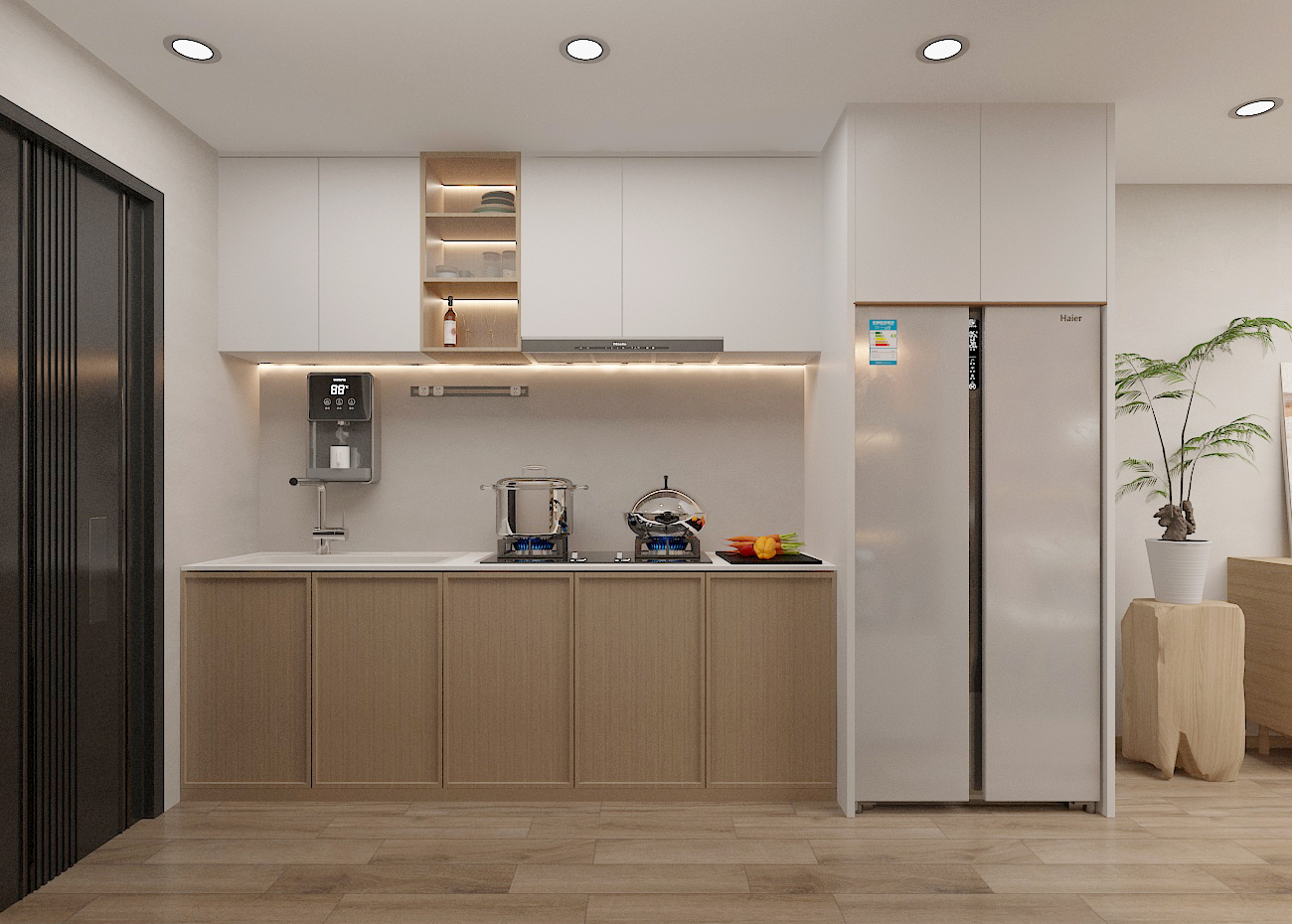 舉例:直線型的書架或無分段的廚櫃是現代風家居的常見元素。