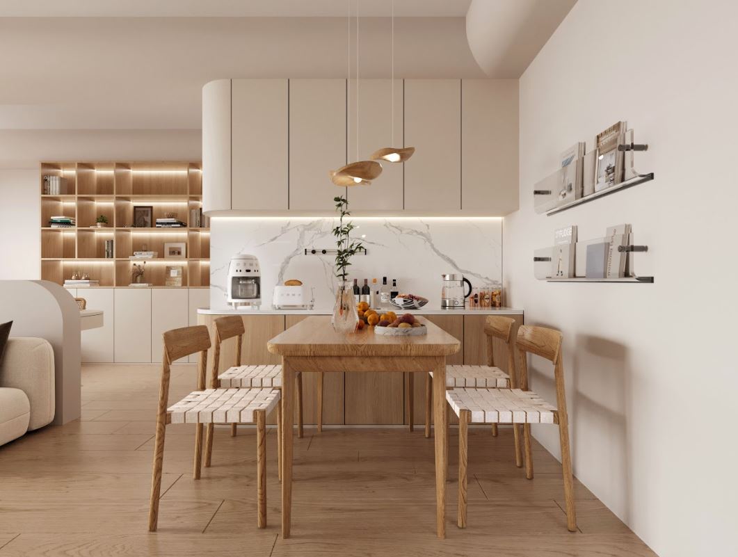 這些色彩有助於放大空間感,並與自然光線相輔相成,給人整潔、明亮的氛圍。