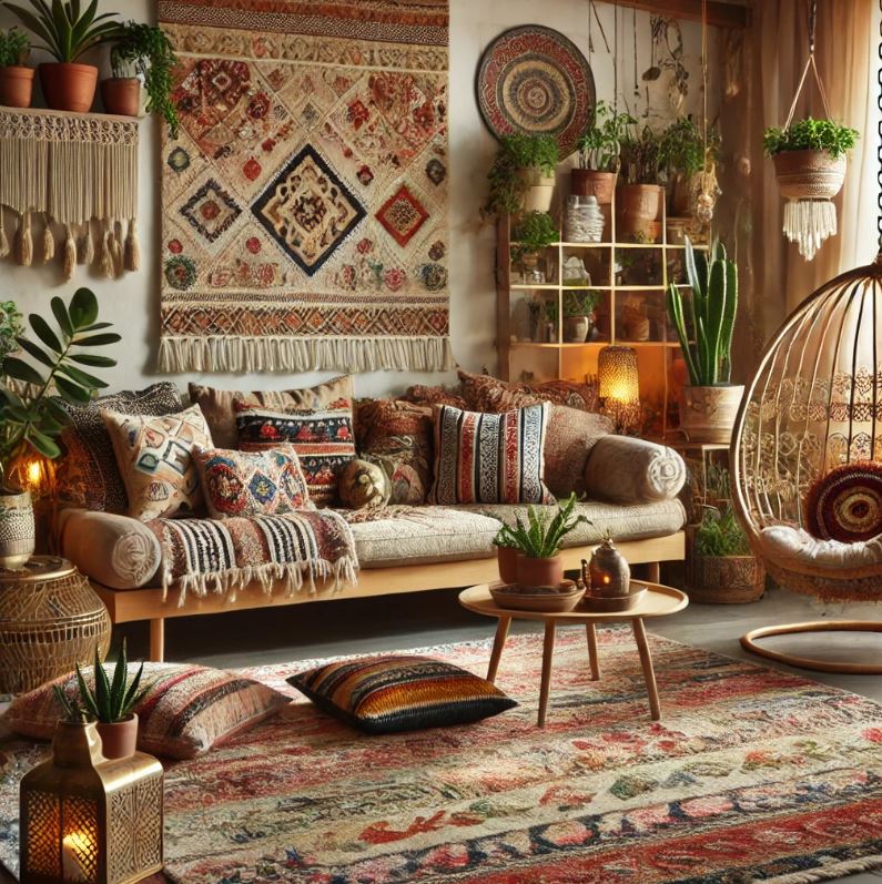 波西米亞風格強調個性化與藝術性,民族圖案、手工藝品和異國風裝飾品是其典型元素。這些裝飾能充分展現主人的個性與品味。