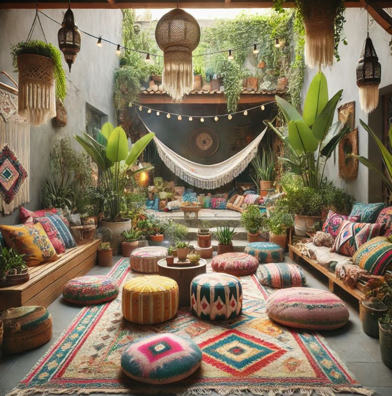 波西米亞風格強調文化融合,通過結合來自不同地區的藝術元素,如摩洛哥燈具、印度紡織品或拉丁美洲圖案,打造出多元化且層次豐富的空間。