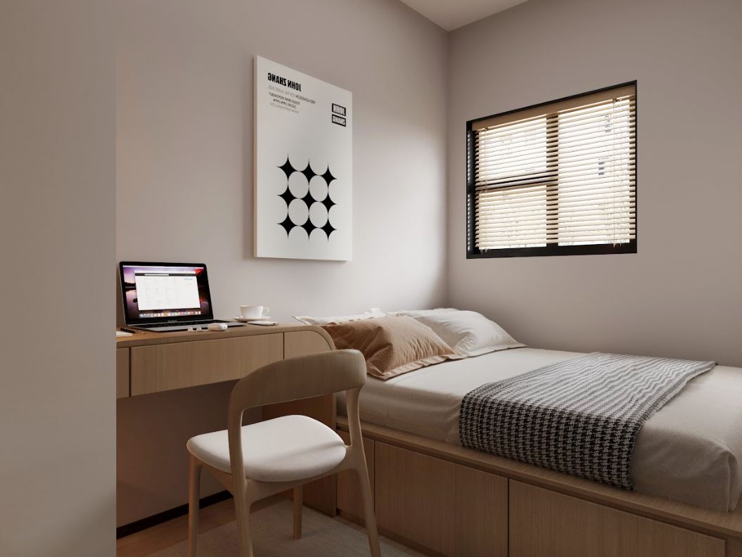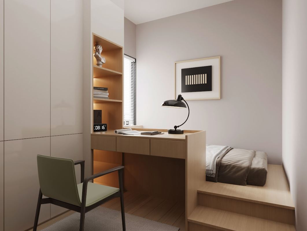 - 隱藏式收納床,增加儲物空間。