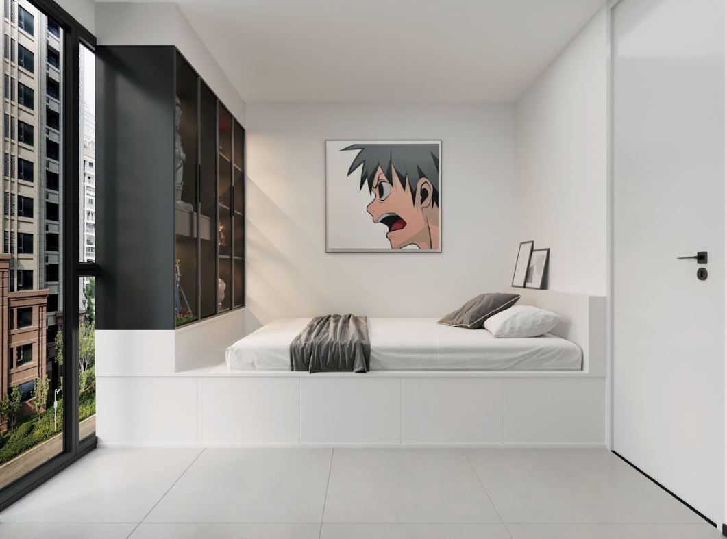 臥室 + 書房一體化:透過折疊桌或壁掛書架,讓臥室兼具辦公功能。