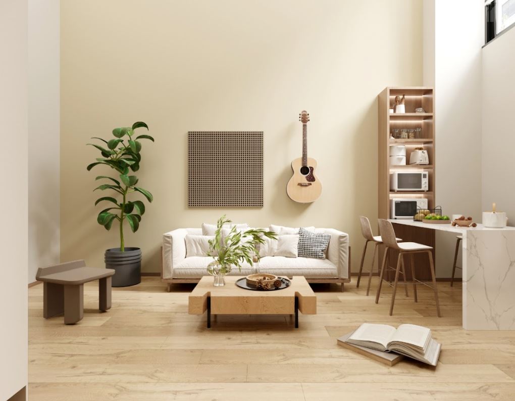 木質地板:增添溫暖感,可搭配小地毯提升舒適度。