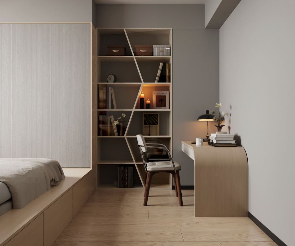 - 書房收納設計:書房可以設置大容量的書架、檔案櫃來整齊擺放書籍、文件等,並合理規劃空間,讓工作和學習區域井然有序。