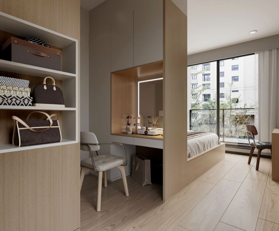 選擇簡約風格的收納設計,避免過於繁雜的家具和裝飾,能讓主臥室看起來更加開闊、舒適。使用隱藏式收納設計,如隱形抽屜或掛式收納系統,能保持空間的簡潔感,同時滿足儲物需求。