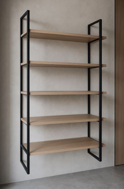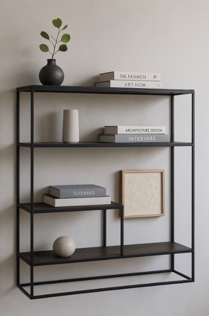 在書房或辦公區域,設計帶有儲物功能的鐵件層板可以兼顧美觀與實用,收納書籍和辦公用品的同時,保持簡潔的視覺效果。