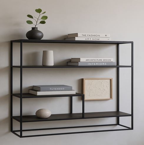 簡約而堅固的鐵件層板能完美融入現代、工業或極簡風格的客廳設計,既不會搶走焦點,又能提升整體氛圍。