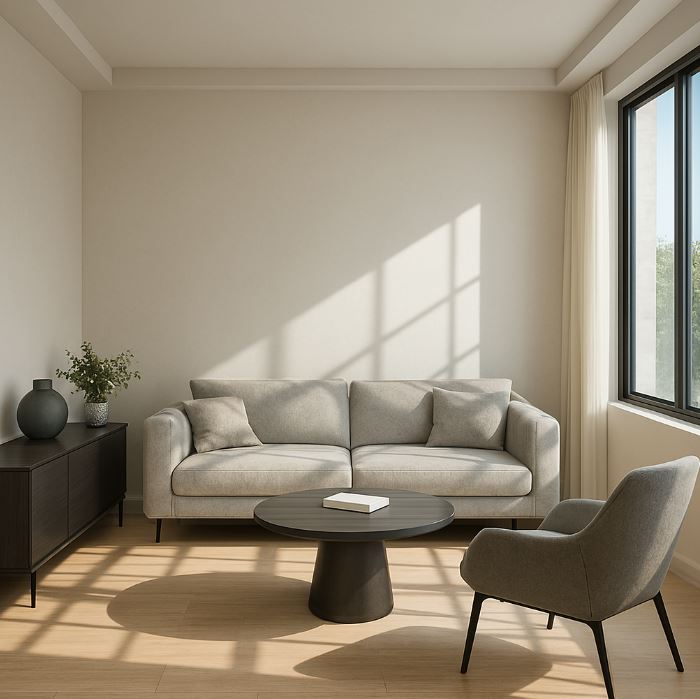 選擇淺色系的牆面顏色(如米色、白色、淺灰色等),這些顏色能夠反射更多光線,使室內空間看起來更加明亮和開闊。淺色系有助於增強光線的散射,並讓光線更均勻地分布在整個空間中,是提升光線感的有效方法。