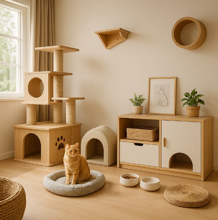 選擇符合環保標準的材料,如無害的木材、天然纖維和無毒塗料,這樣可以避免有害化學物質對毛孩的健康產生負面影響。