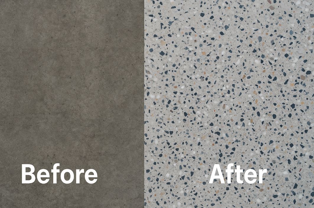 - 骨材(Aggregates):如大理石碎片、石英砂、彩色玻璃、貝殼等,為地坪增添質感與色彩層次。
