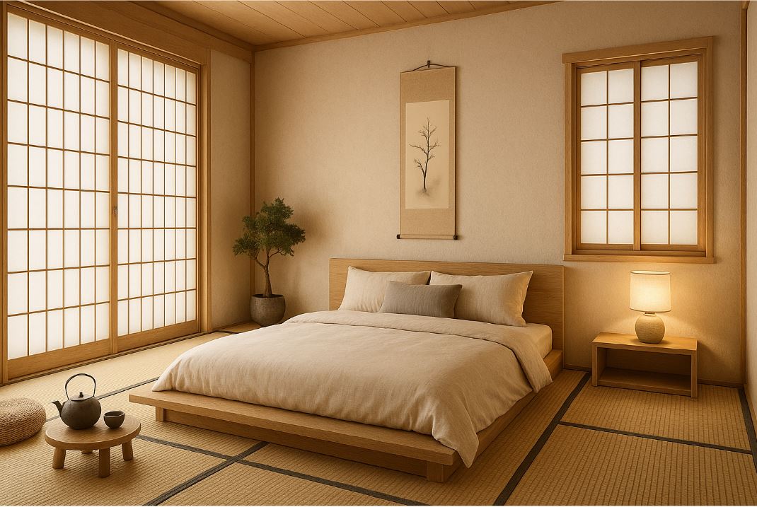 日式禪風非常適合用於書房、冥想室或小型和室。設置矮桌、坐墊與木製書架,搭配簡約擺設與淡色調牆面,有助於集中注意力並舒緩情緒。若空間足夠,還可結合室內造景或小型枯山水角落,增添禪意。