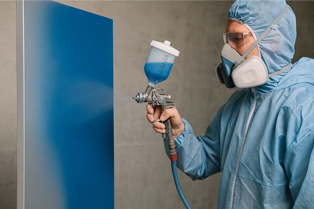 水性冷烤漆的某些產品已針對DIY市場設計,可使用噴罐、滾輪或刷具塗裝。但若想達到專業表面質感(如均勻光澤、抗刮效果),仍建議使用以下配備: