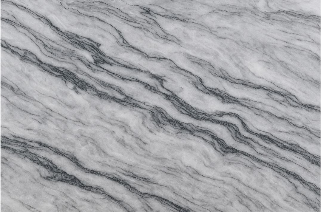 A: 銀狐大理石是一種天然石材,主要特徵是灰白色基底上帶有不規則深灰或墨黑色紋理,紋理線條自然流暢,外觀如同銀狐穿行雪地,因此得名。相較一般白色或米色大理石,銀狐大理石更具現代感與視覺層次,適合高質感、簡約或輕奢風格空間使用。