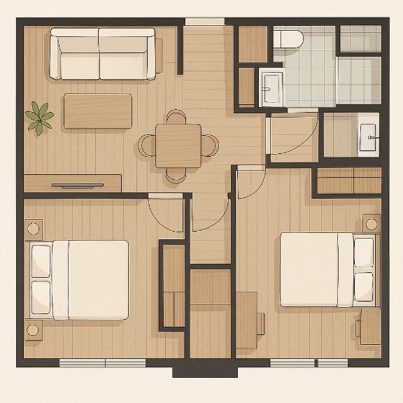 中等坪數可透過機能分區打造清晰的生活動線,例如將客廳與餐廳區隔,同時設置足夠收納空間,提升居住便利性。