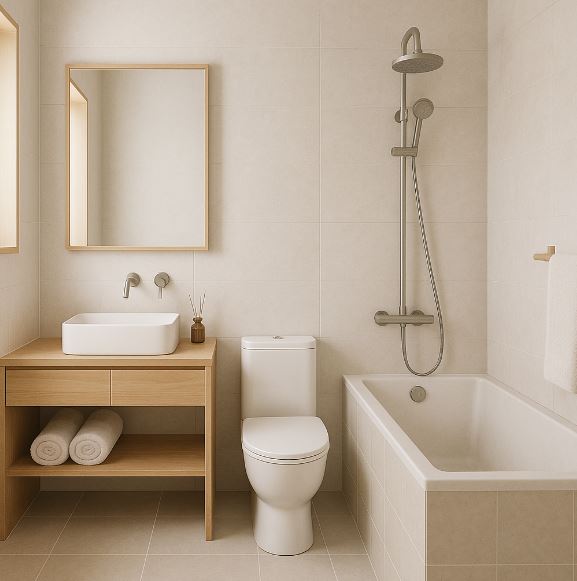對於四口之家,建議設計至少 兩個洗手台、具備獨立淋浴與儲物空間的浴室,不僅提升使用效率,也能有效分流早晚高峰時段的使用需求。