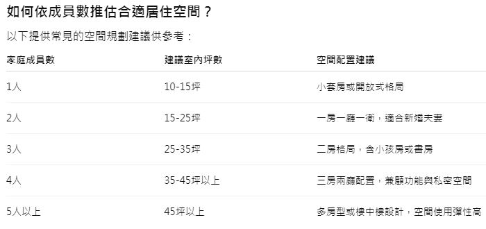 尤其是在房價高漲、空間有限的城市環境下,如何根據家庭成員數量推估最適居住空間,成為室內設計與裝潢規劃時的重要課題。
