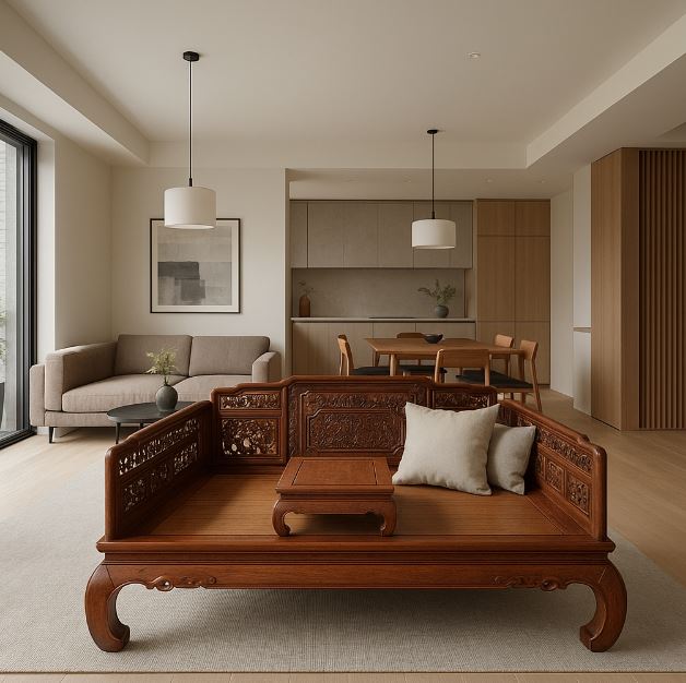 現代羅漢床因造型簡潔、功能多元,能靈活融入不同空間: