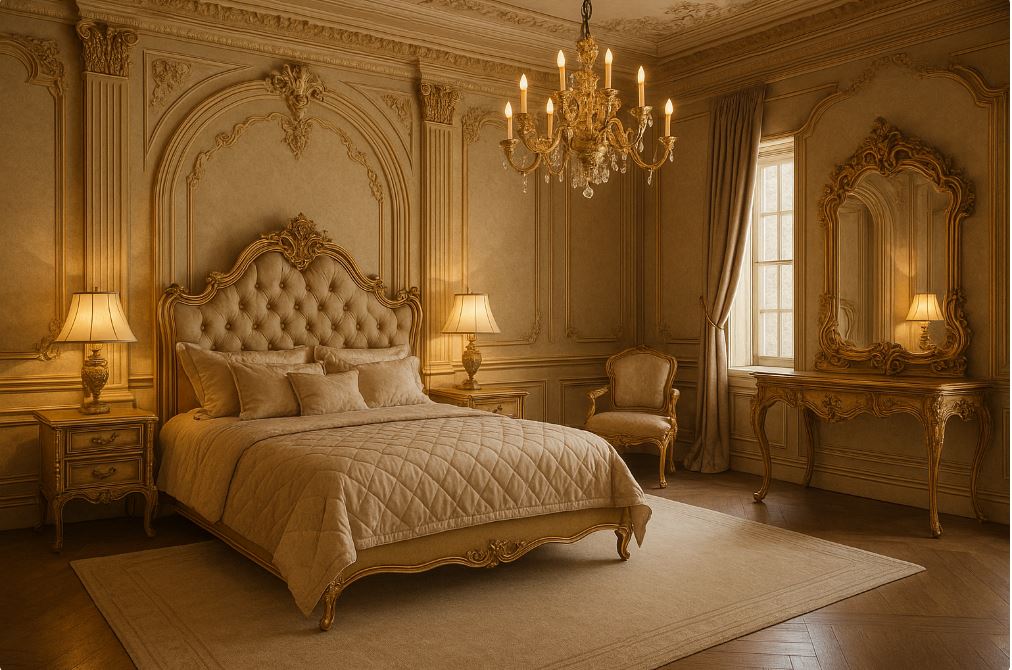 - 保留雕花與金色細節,但減少過多裝飾,避免壓迫感。