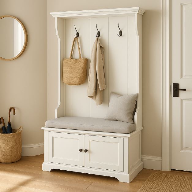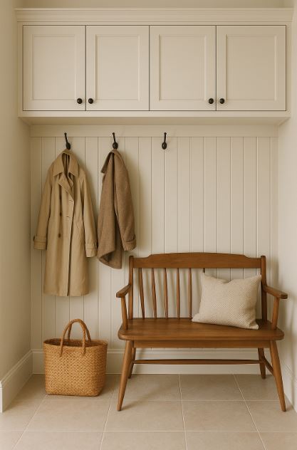 回家第一站就是玄關:坐下換鞋、放包、收鑰匙與快取外出物。