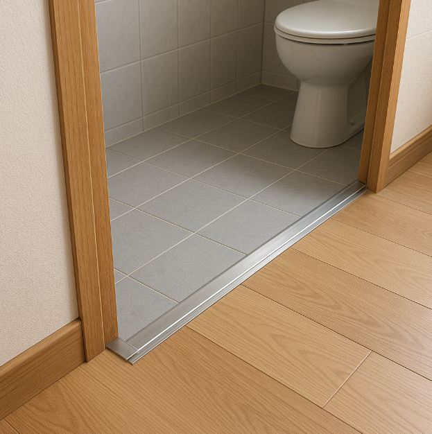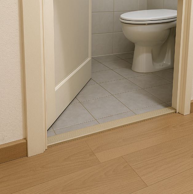 收邊細節:門檻兩側需留 3–5 mm 影縫,並用彈性嵌縫材填實,避免硬材質對撞破裂。