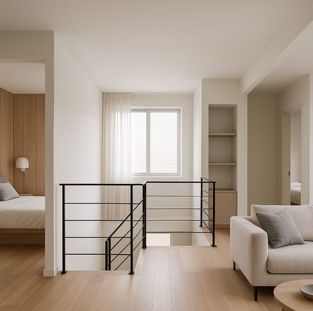 - 樓梯落點避免直視床位;梯口設夜間感應燈。