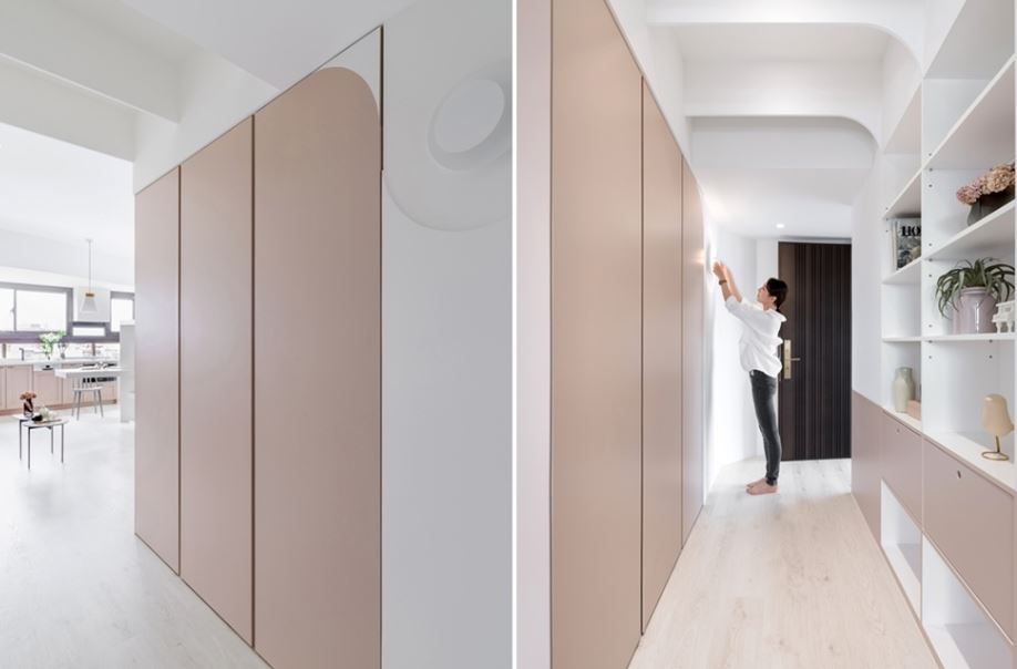 倘若空間條件無法容許設計獨立玄關,也可以利用動線與櫃體創造區隔性。