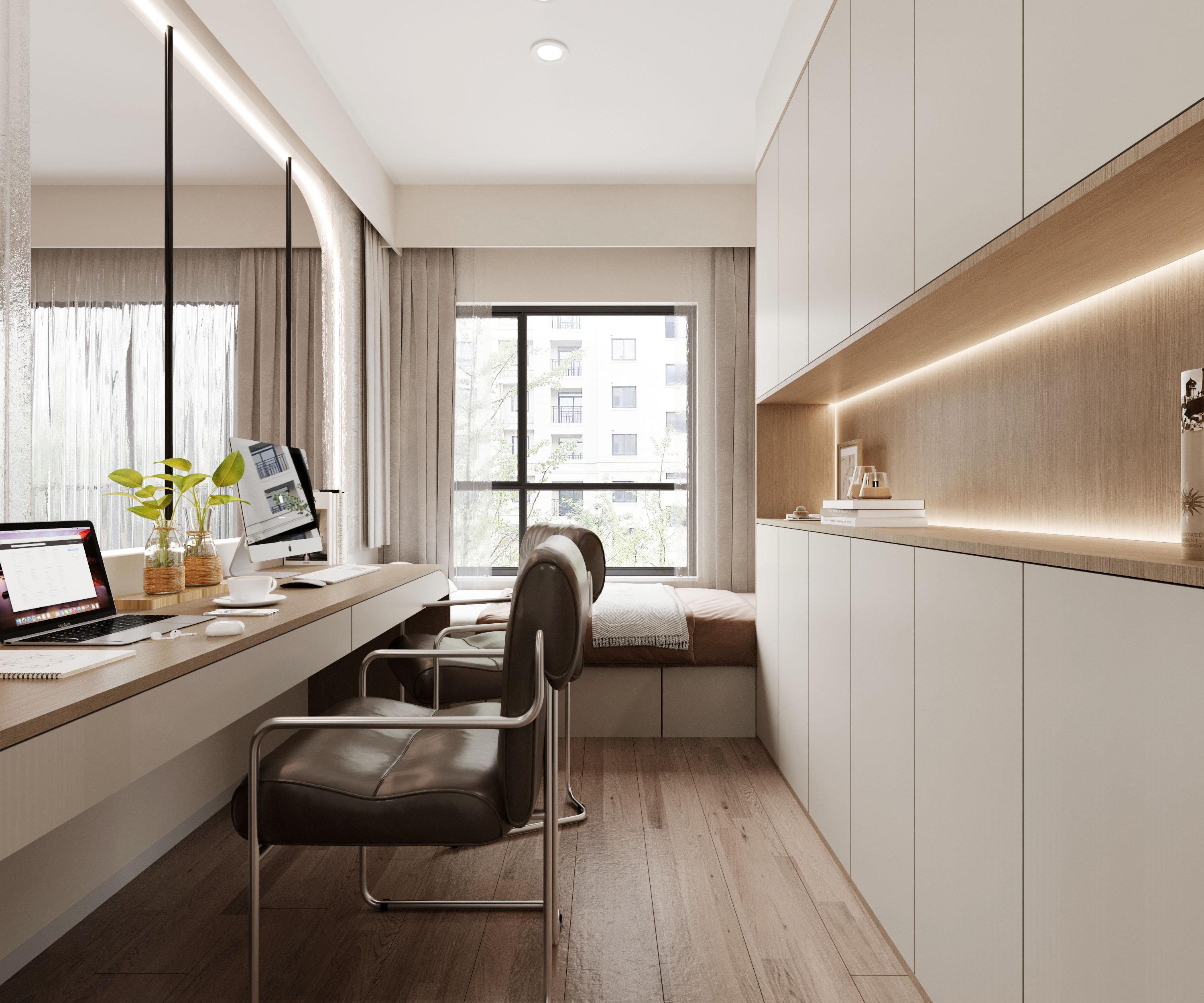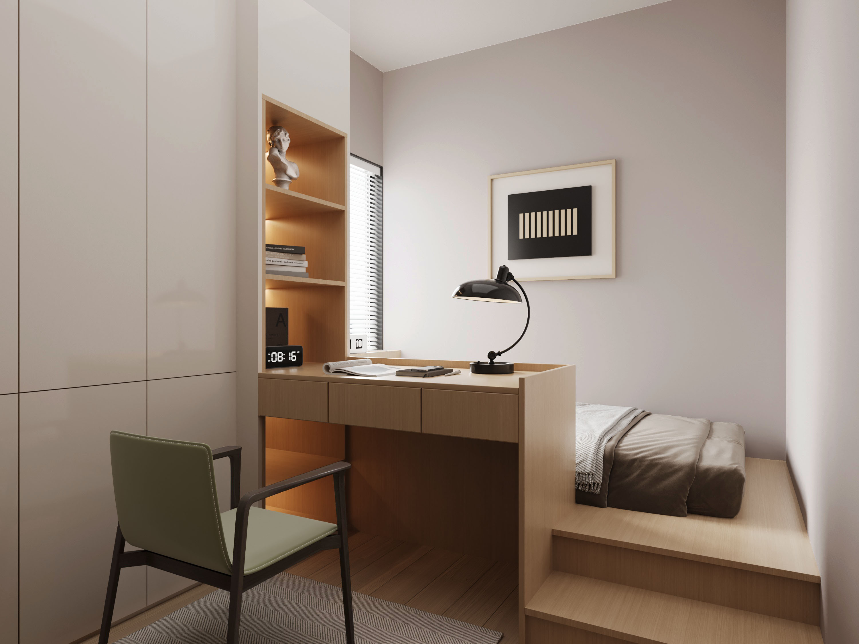 既實用又保持整體視覺的清爽感,使次臥更加和諧統一。