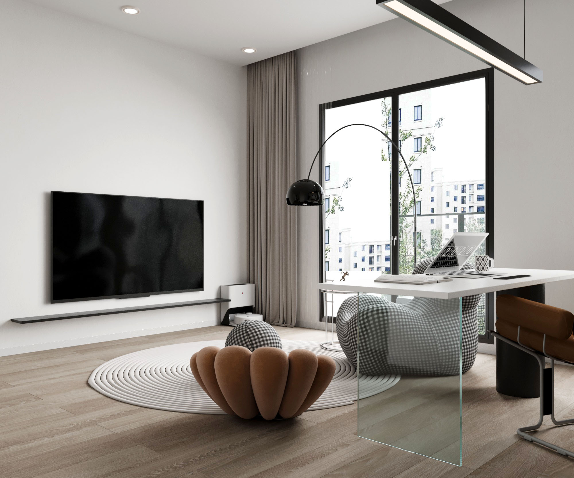 在現代風的空間設計中,簡潔的線條與細膩的材質是美學的基石。大面積的落地窗讓自然光灑滿每一寸角落,增添了空間的通透感。精選的家具與中性色調的搭配,使得整體環境更顯沉穩與優雅,打造出一處放鬆且具有格調的生活場域。每一件物品的擺設都被謹慎考量,以功能性為出發點,讓生活回歸本真,與空間共生。