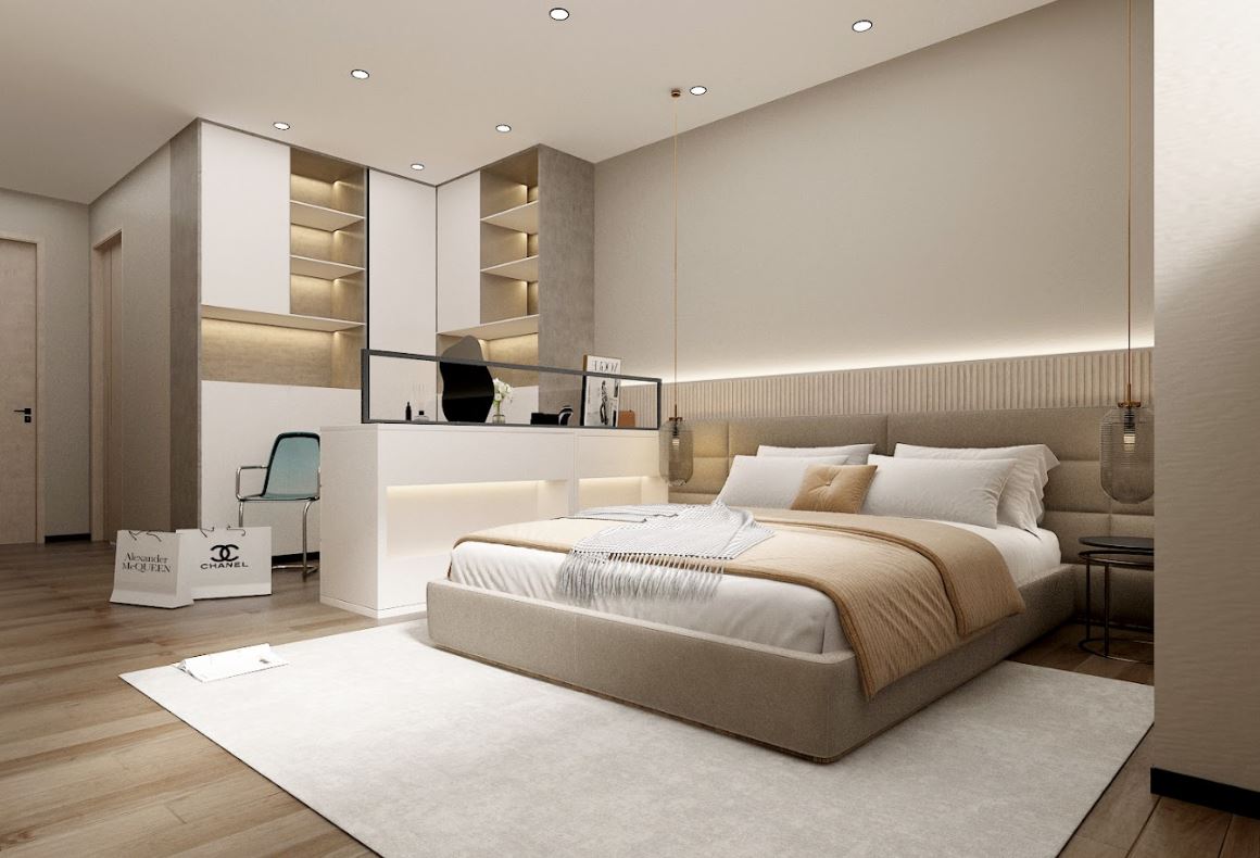 這樣的設計既能提供充分的儲物空間,又能提升整體臥室的美學質感。