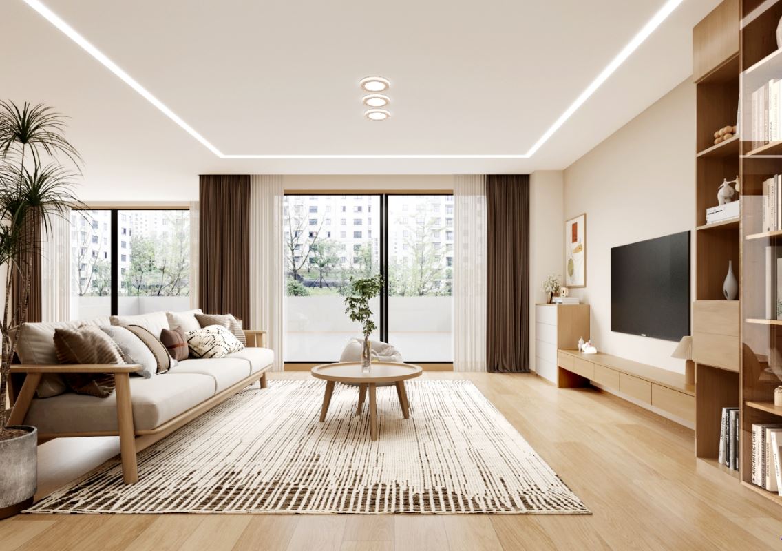 客廳是二房一廳的核心區域,需具備放鬆、接待、娛樂等功能: