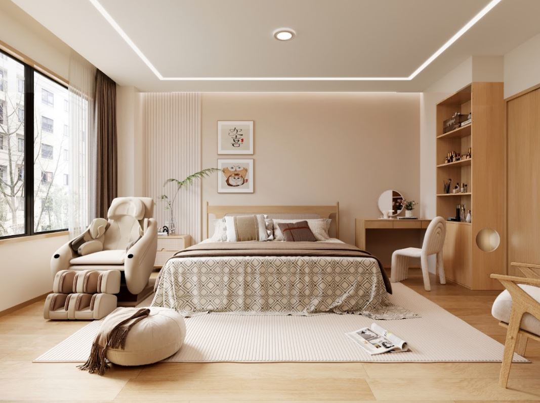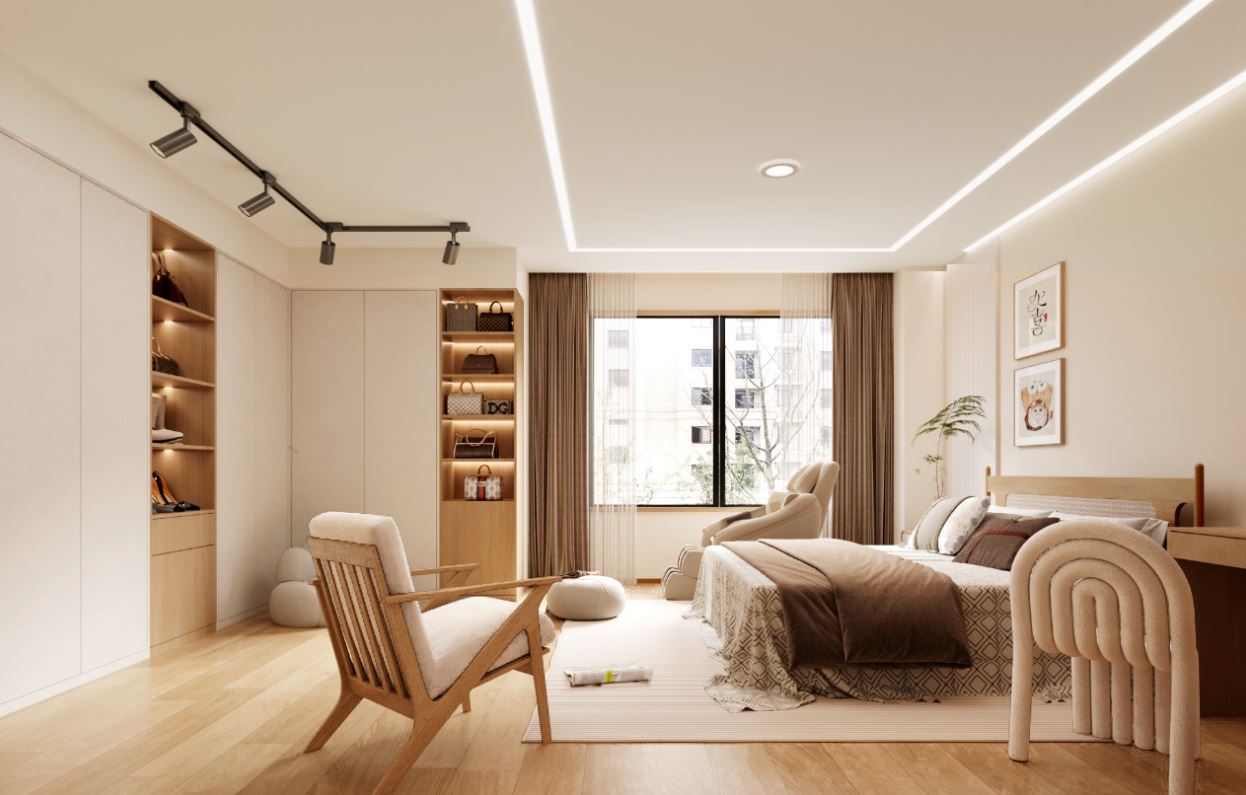 無印風(Muji 風)強調 簡約、自然、溫暖,透過簡單的家具、自然材質與舒適的色彩,營造出一個令人放鬆的臥室空間。無印風主臥的核心設計理念包括: