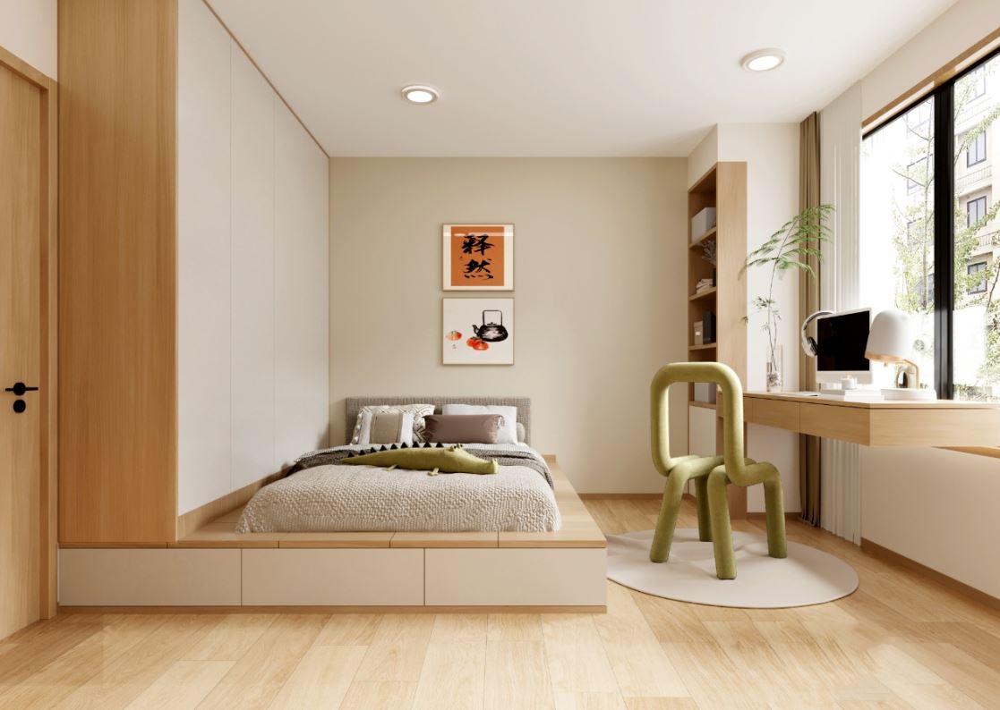 無印風(Muji 風)強調簡約、自然與高機能性,特別適合次臥這類坪數較小的房間。次臥的用途可根據需求靈活調整。