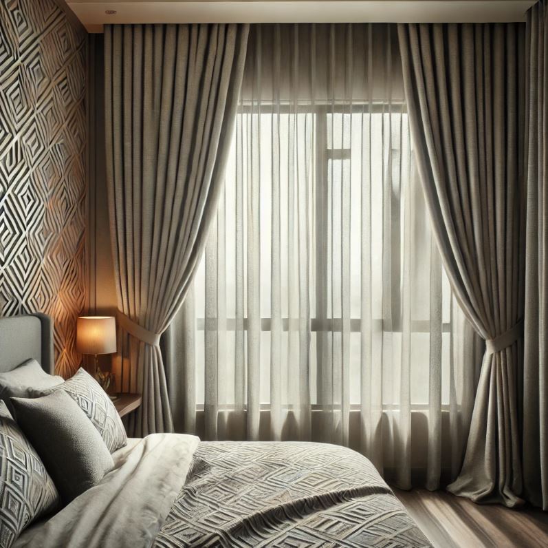 - 臥室設計:在臥室中,可以選擇輕盈的紗簾搭配厚重的窗簾,創造一個舒適、溫馨的睡眠環境。同時,這樣的搭配能有效調節光線,提供私密性。