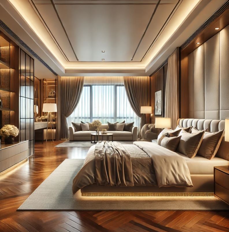 牆面、地板和家具的顏色搭配應該保持協調,避免過多的強烈對比。淺色系搭配深色細節,能夠使空間看起來更加有深度,並且不失輕盈感。