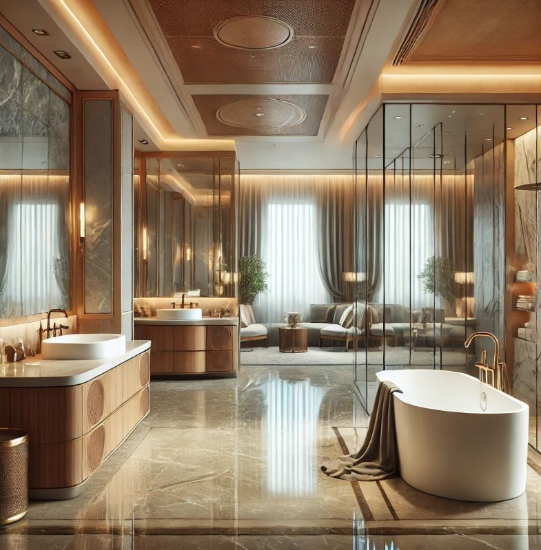 鏡子和玻璃材質在空間設計中具有延伸視覺的效果。巧妙地將大面積鏡子或玻璃隔斷引入空間,可以反射光線並擴大視覺範圍,使空間看起來更加開闊。