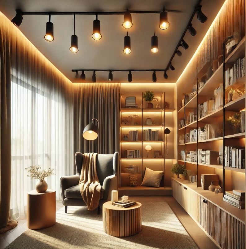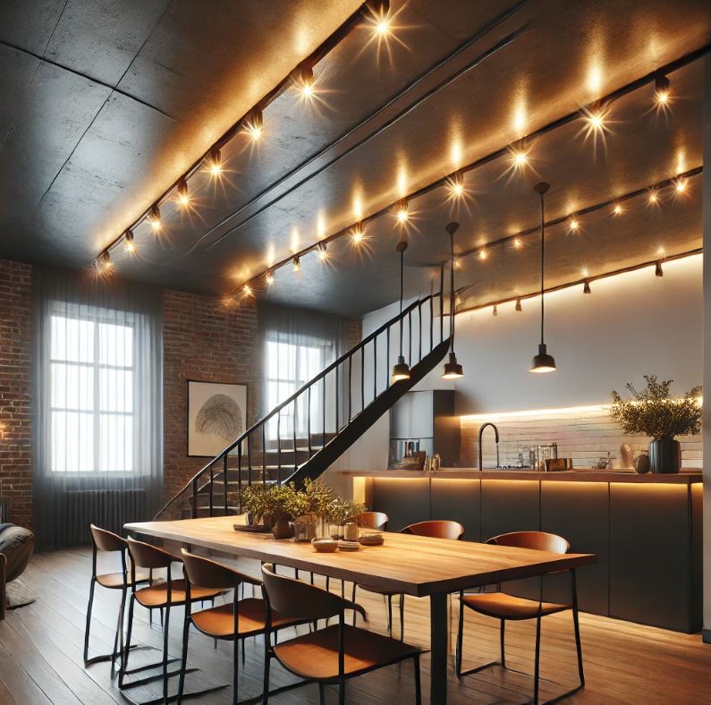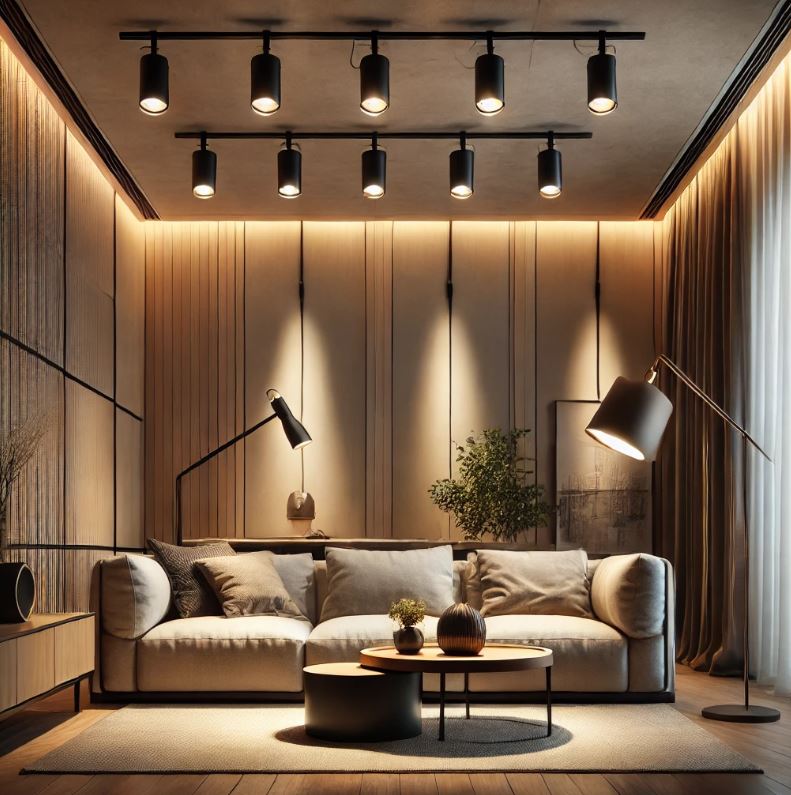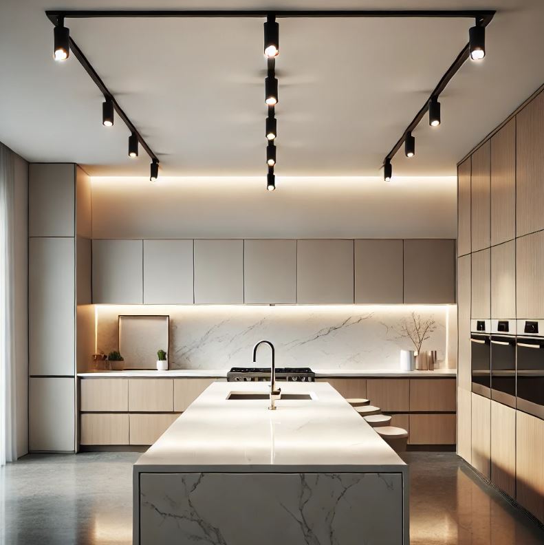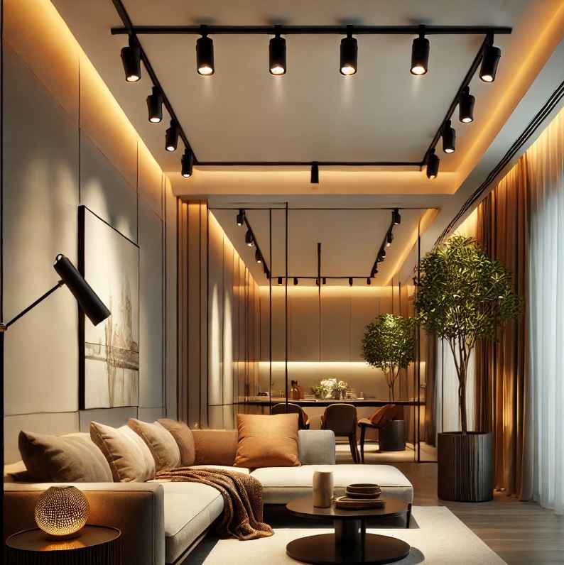 由於其可調式設計,軌道燈非常適合需要強光或聚焦光源的空間,例如廚房、客廳、藝術展示區等。