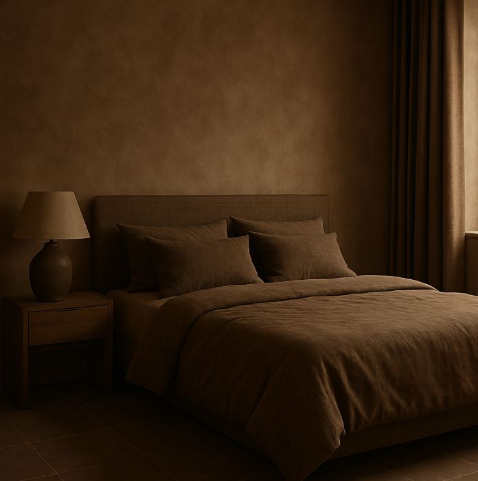 美拉德風色彩以其沉穩的色調和高質感的搭配,為臥室增添了一份優雅與放鬆感。