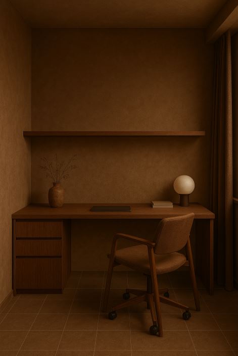 這些沉穩的色調能夠增強空間的穩定感和成熟氛圍,非常適合用於需要專注與靜心的空間,如書房或辦公室。