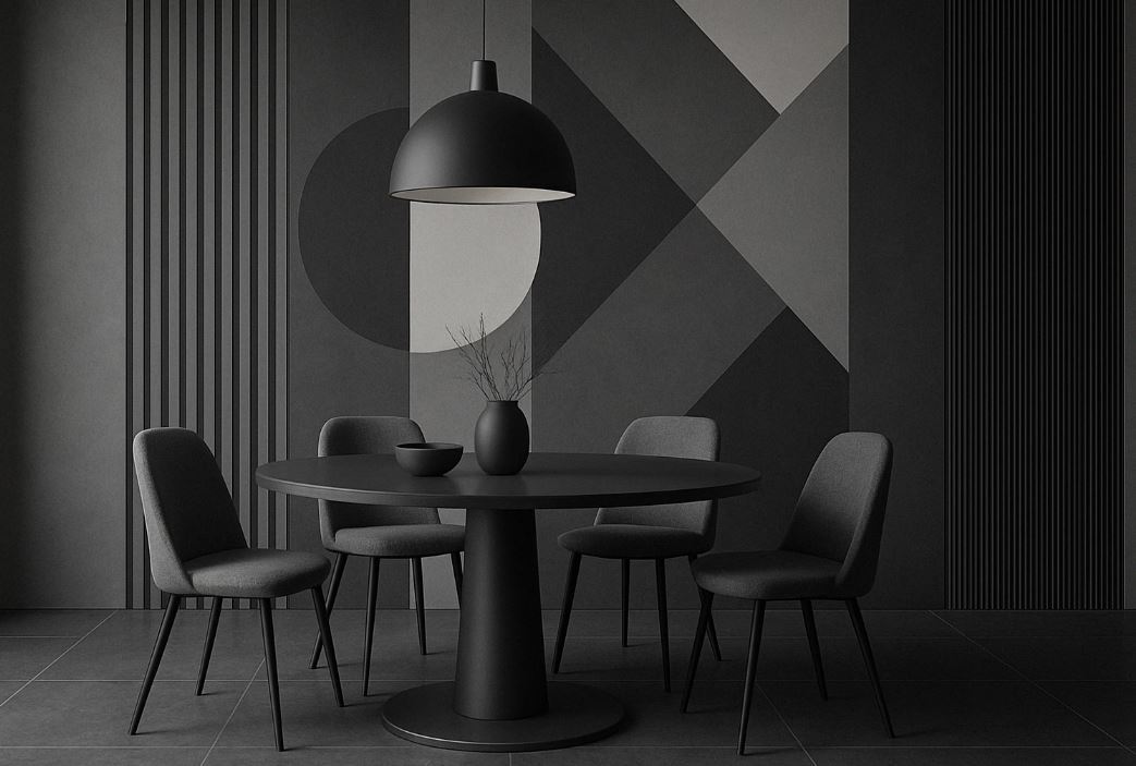 您可以選擇黑色金屬燈具、白色木質桌椅等,以材質對比來增強空間的深度和層次。