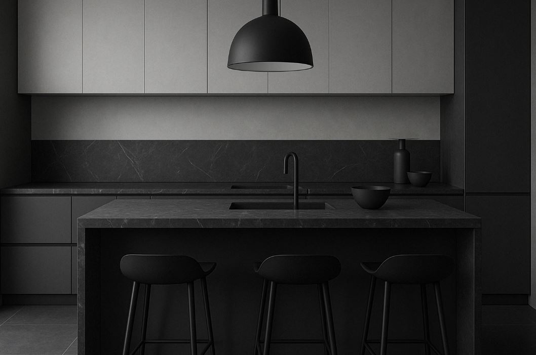 適當使用一些灰色、金屬色或木質元素來緩解黑白色的強烈對比,能夠讓空間看起來更加柔和且具有層次感。