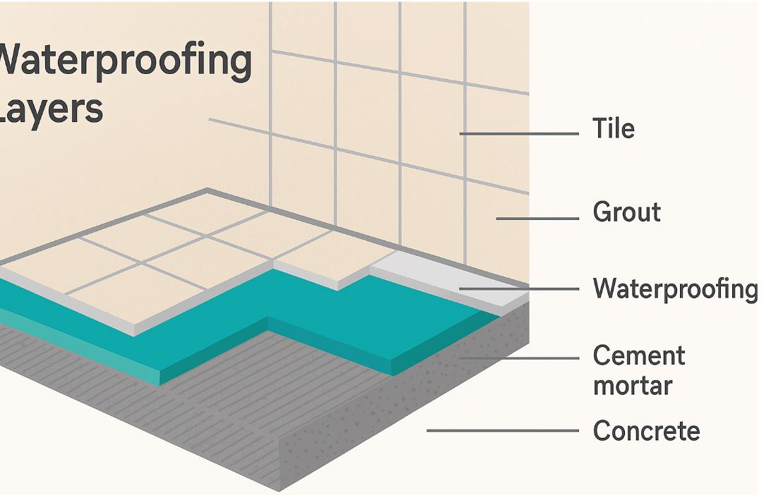 在磁磚鋪設前完成防水層施作,並進行蓄水測試至少24小時,確保防水效果達標後再進行後續裝修。