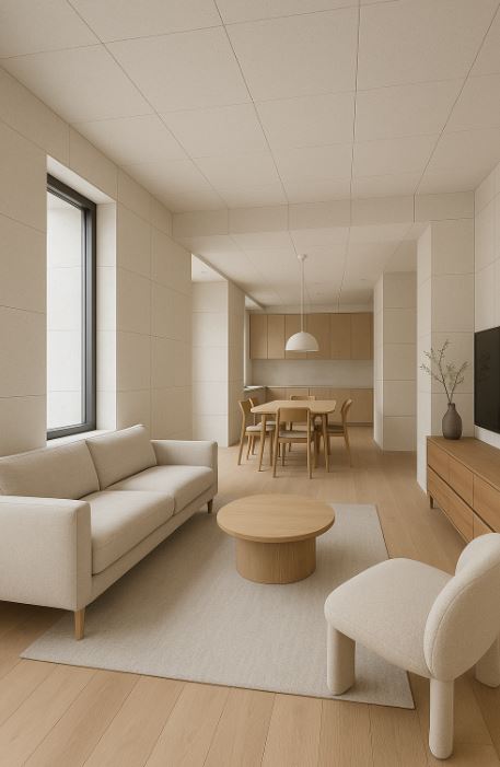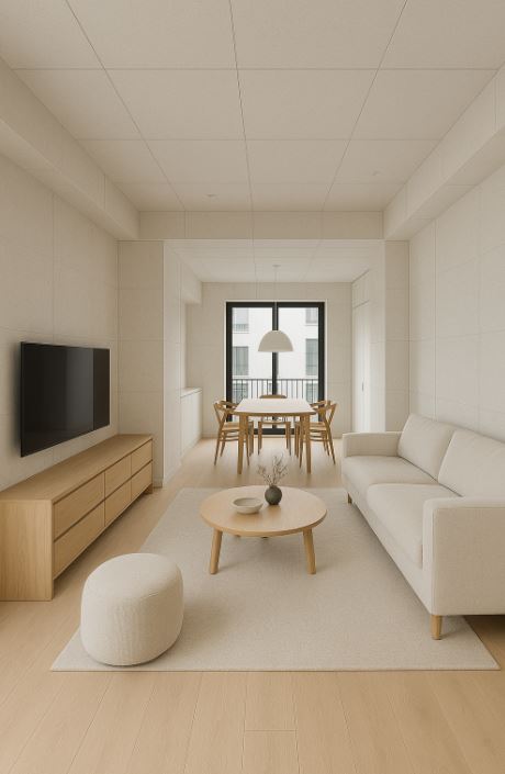 例如可將矽酸鈣板用於牆面或天花板,搭配淺色木地板或實木家具,呈現清新而溫馨的居家氛圍。
