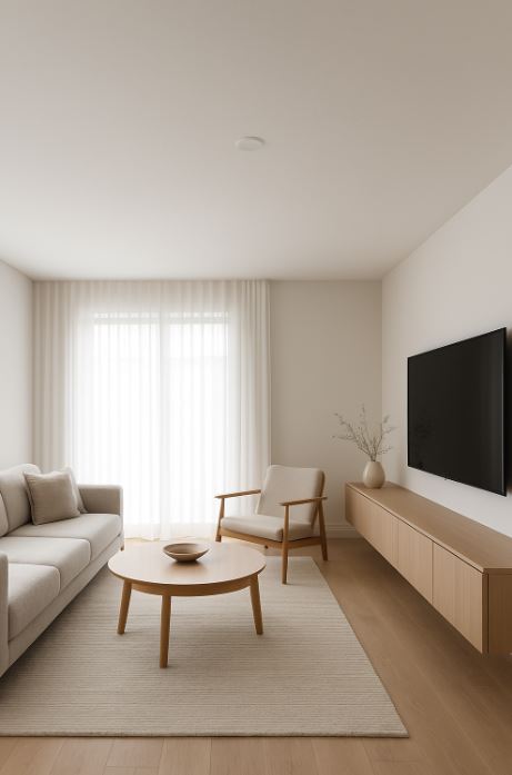 融合簡約風家具保持風格一致性:選擇線條俐落、無過多裝飾的家具風格,可與平釘天花板達成設計語言一致性,彰顯現代簡約質感。
