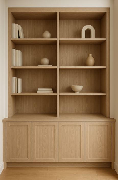 可調式分隔設計:櫃體內部建議設計成可調節層板,依儲物需求調整高度與間距,讓每一格空間都被善用。