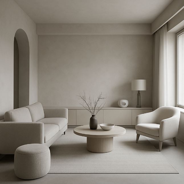 軟裝配飾選擇:在窗簾、地毯、沙發等軟裝中運用低彩度色系,能夠減少視覺負擔,增強空間的溫馨與舒適度,營造輕盈簡約的居住氛圍。