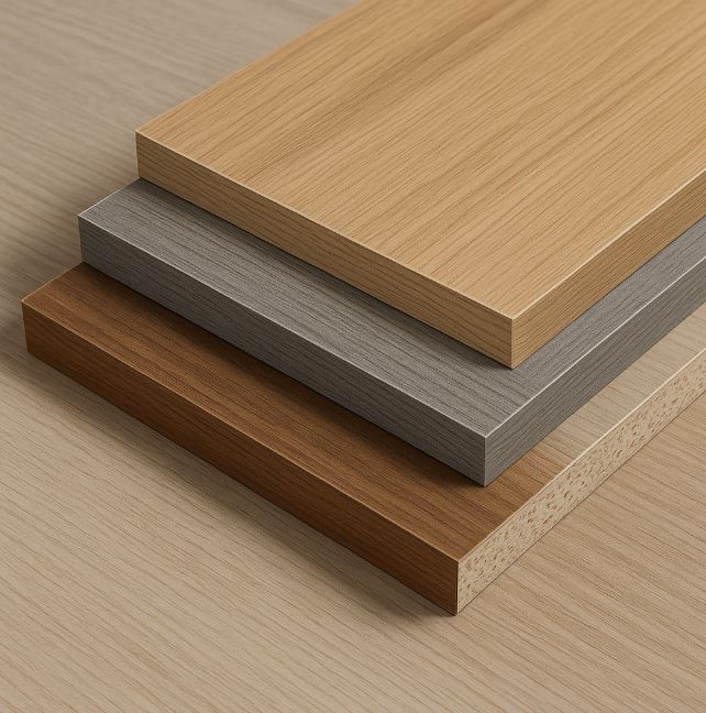 對美觀質感有高要求的空間:建議使用 三胺板。其表面壓貼處理精緻,色彩穩定且具現代感,可與各種風格的家居設計完美融合。