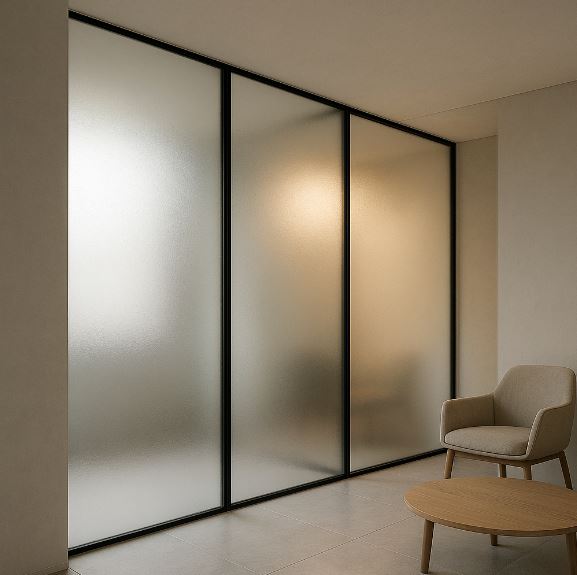 霧面玻璃具備良好的遮蔽性與透光性,是衛浴隔間、臥室拉門、辦公室隔屏、玄關設計與櫃體門片等需要隱私又希望保留光線的空間的理想選擇。