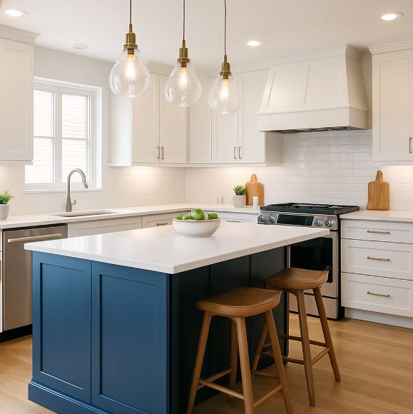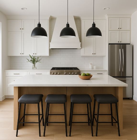 挑選與整體廚房設計風格協調的燈具,如簡約現代、工業風、北歐風等,讓燈光色溫與廚房色系和諧呼應,提升空間的視覺美感與設計一致性。